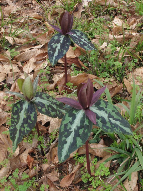 Trillium decipiens (Mimic Trillium) occurs in moist hardwood forests and limesink forests in southwest Georgia. For more information, see: https://www.georgiabiodiversity.org/portal/profile?group=plants&es_id=20231