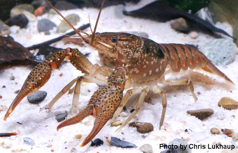 The only species previously collected with Humpback Crayfish that could be confused with it are White River Crawfish (Procambarus acutus), Hummock Crayfish (P. lunzi), and Eastern Red Swamp Crawfish (P. troglodytes). However, all three have a narrower areola than Humpback Crayfish and none have a similar color pattern.