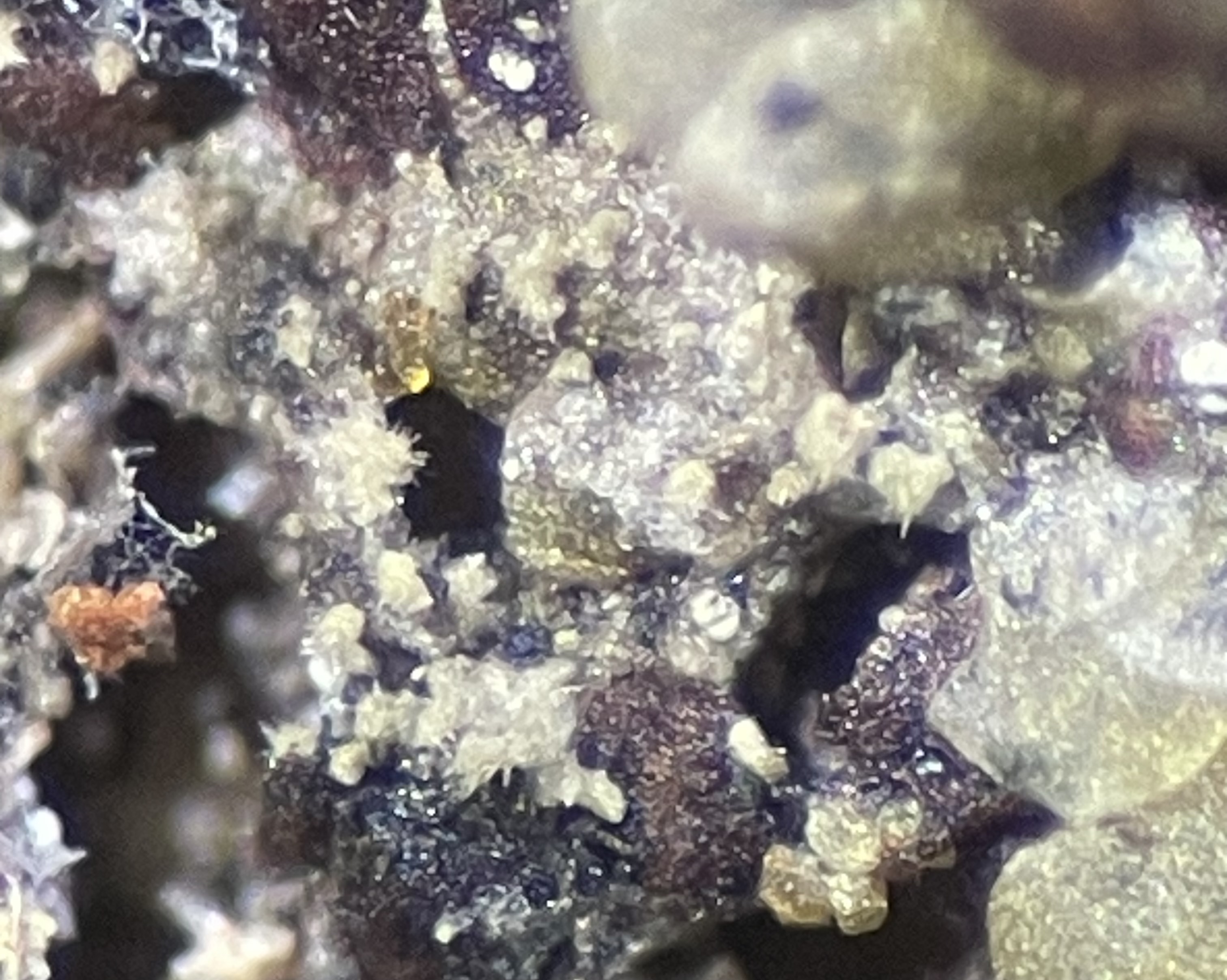 Tiny green oval granules branching off one another, with short, sparse, bristly hairs, altogether resembling the pads & spines of prickly-pear cacti; FIELD ID: make sure bristly hairs are short, & granules branch off one another; high magnification needed