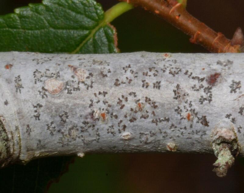 Woodlands & forests on hardwood bark, especially twigs & small branches
