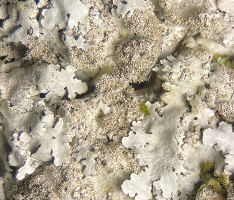 Corticolous foliose lichenized fungus, photobiont a species of green alga (Trebouxia?)