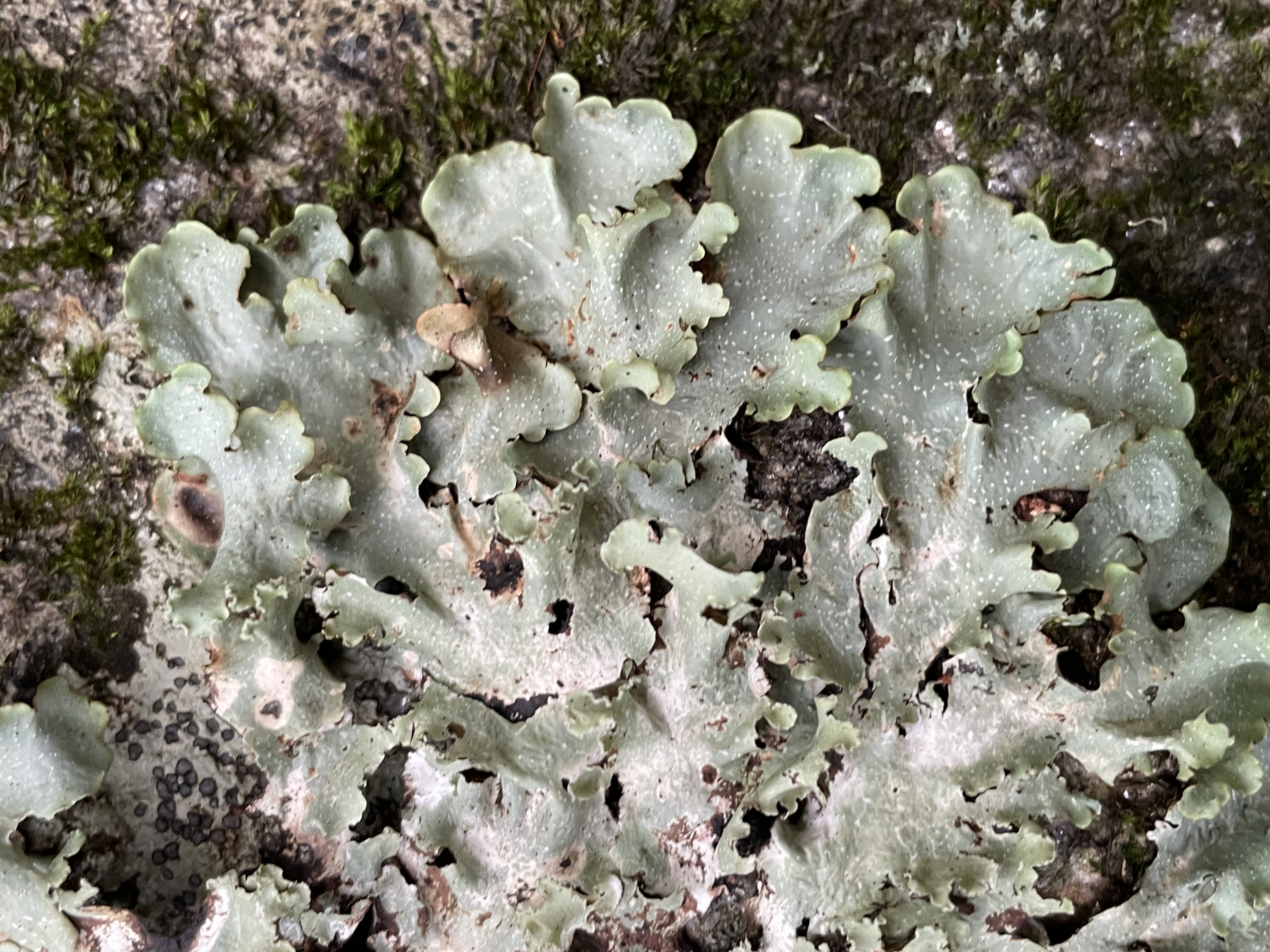 Corticolous & saxicolous foliose lichenized fungus, photobiont a green alga (in genus Trebouxia?)
