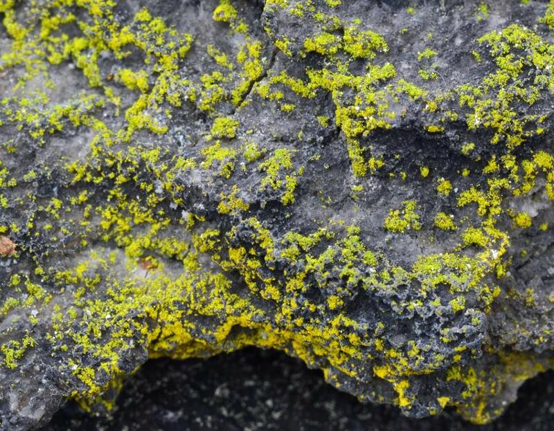 Bright yellow leprose thallus, becoming yellow-green in shaded habitats; granules often clumped into small patches, or aggregated into larger areas; CHEMISTRY: thallus K+ red, slowly; FIELD ID possible with field K test