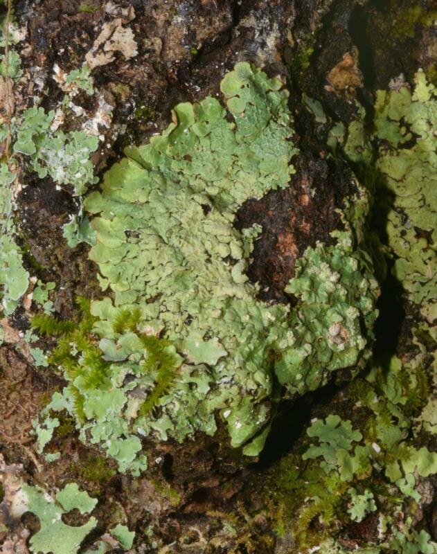 Corticolous foliose lichenized fungus, photobiont a green alga (Trebouxia?)
