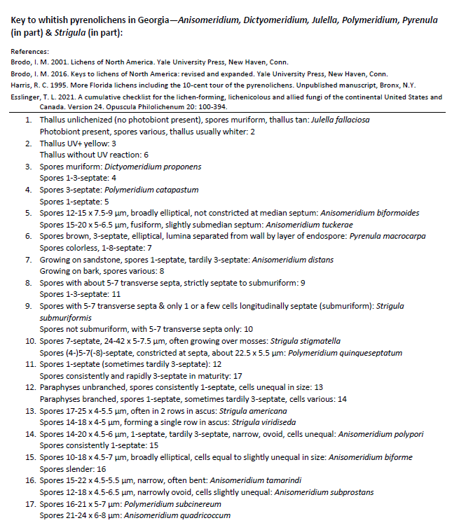 Harris, R. C. 1995. More Florida lichens including the 10-cent tour of the pyrenolichens. Unpublished manuscript, Bronx, N.Y.