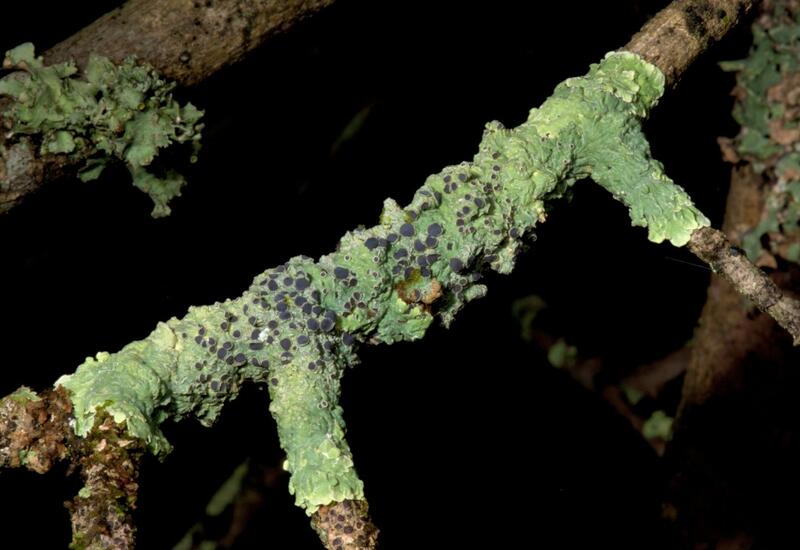 Mostly corticolous lichenized fungus, photobiont a green alga (Trebouxia?)