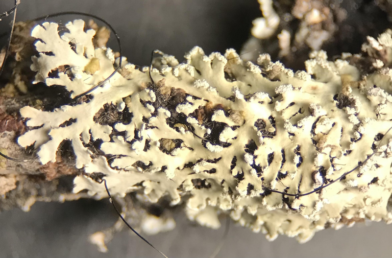 Corticolous foliose lichenized fungus, photobiont a green chlorococcoid alga (Trebouxia?)