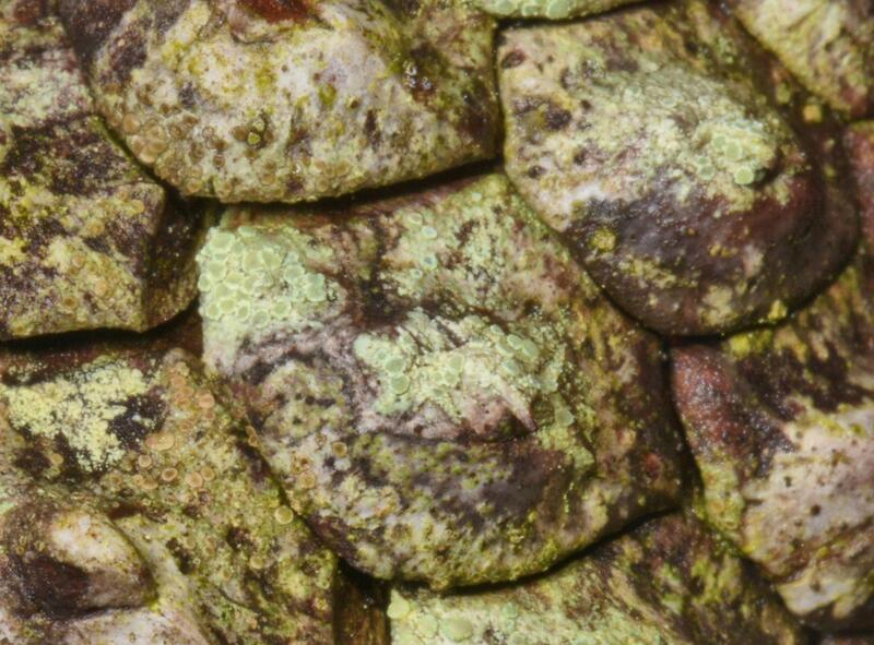Corticolous crustose lichenized fungus, photobiont a unicellular green alga (Pseudotrebouxia)