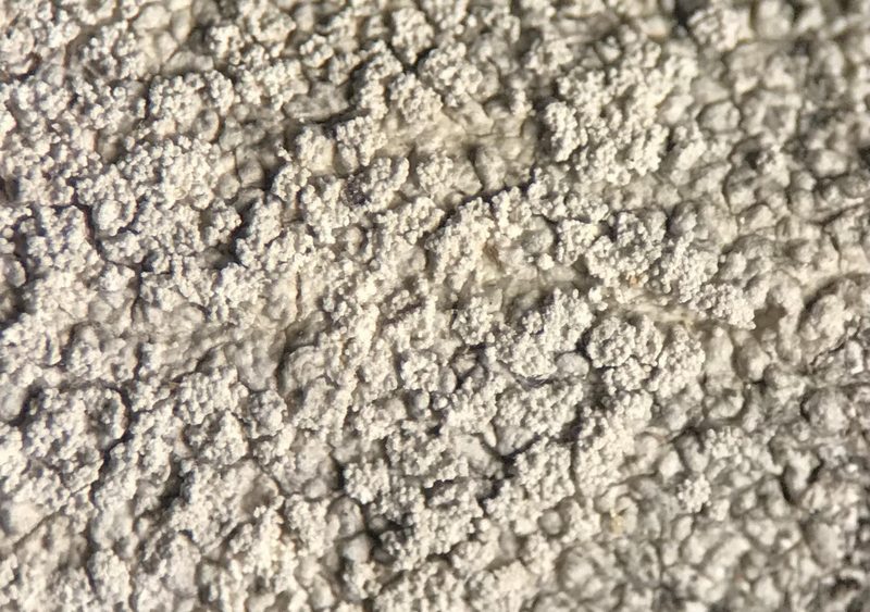 Whitish thallus thin, slightly lumpy; flat to low-mounded, whitish soralia with coarse soredia at first discrete, but merging in places; no disks seen; CHEMISTRY: medulla KC+ red, C+ pink/red (gyrophoric acid), thallus UV+ yellow; FIELD ID: chemical tests required