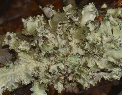 Corticolous foliose lichenized fungus, photobiont a green alga (Trebouxia?)
