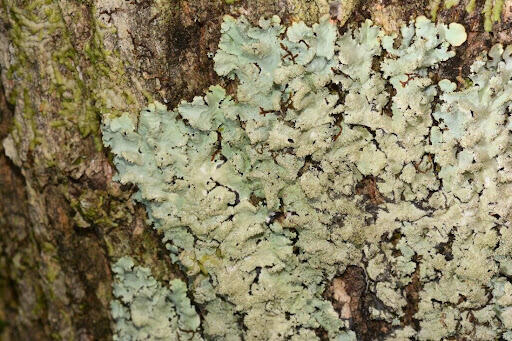 Corticolous foliose lichenized fungus, photobiont a green alga (Trebouxia?)