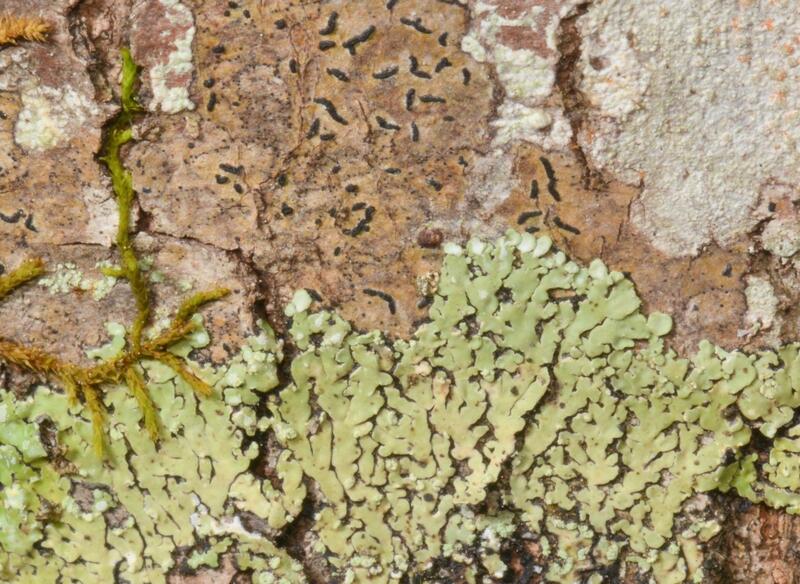 In all forested habitats; substrates: hardwood bark: 31% Quercus, 10% Acer, 8% Carya, 5% Prunus & 32% other hardwoods or unknowns; conifer bark: 6% Juniperus & 5 records each on Pinus & Taxodium; 2 records on Juniperus wood & 1 on moss over Acer bark; 3 records on silicious rock & 1 on weathered plaster; 2 records on rubber parts of old farm equipment