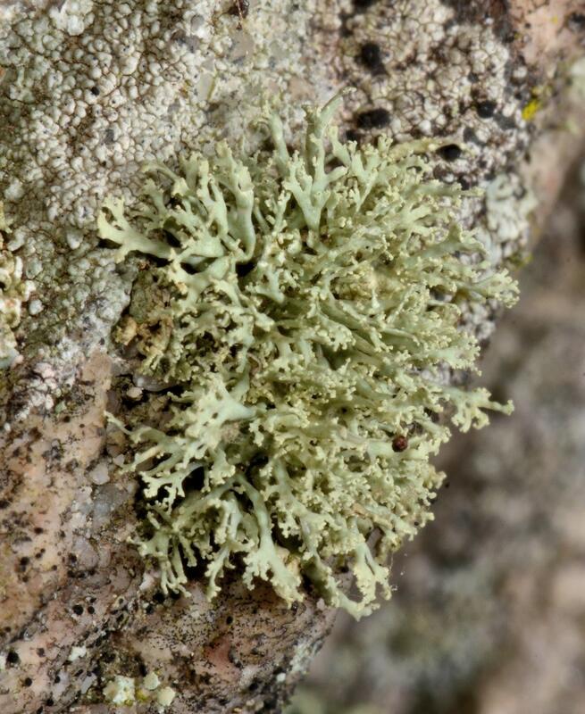 Saxicolous fruticose lichenized fungus, photobiont a green alga (Trebouxia?)