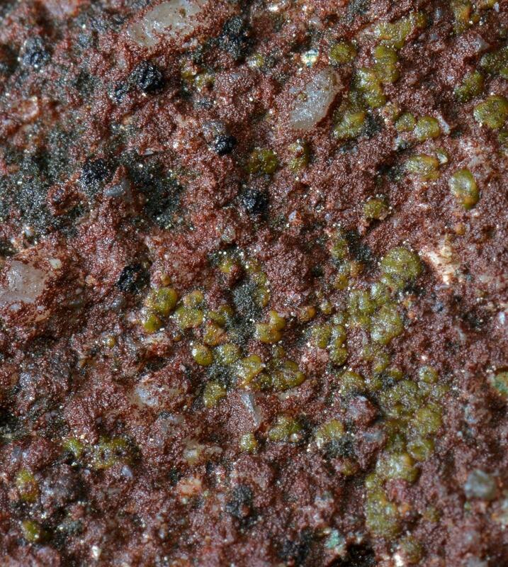 Dull brown scales, irregularly shaped, dispersed over rock surface; FIELD ID possible with experience